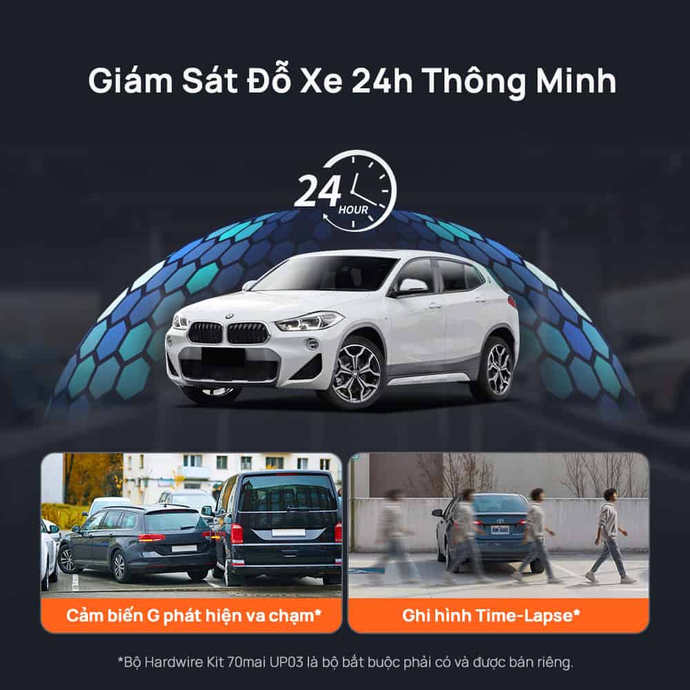 - Tự ghi lại video 30 giây khi có va chạm trong lúc đỗ.